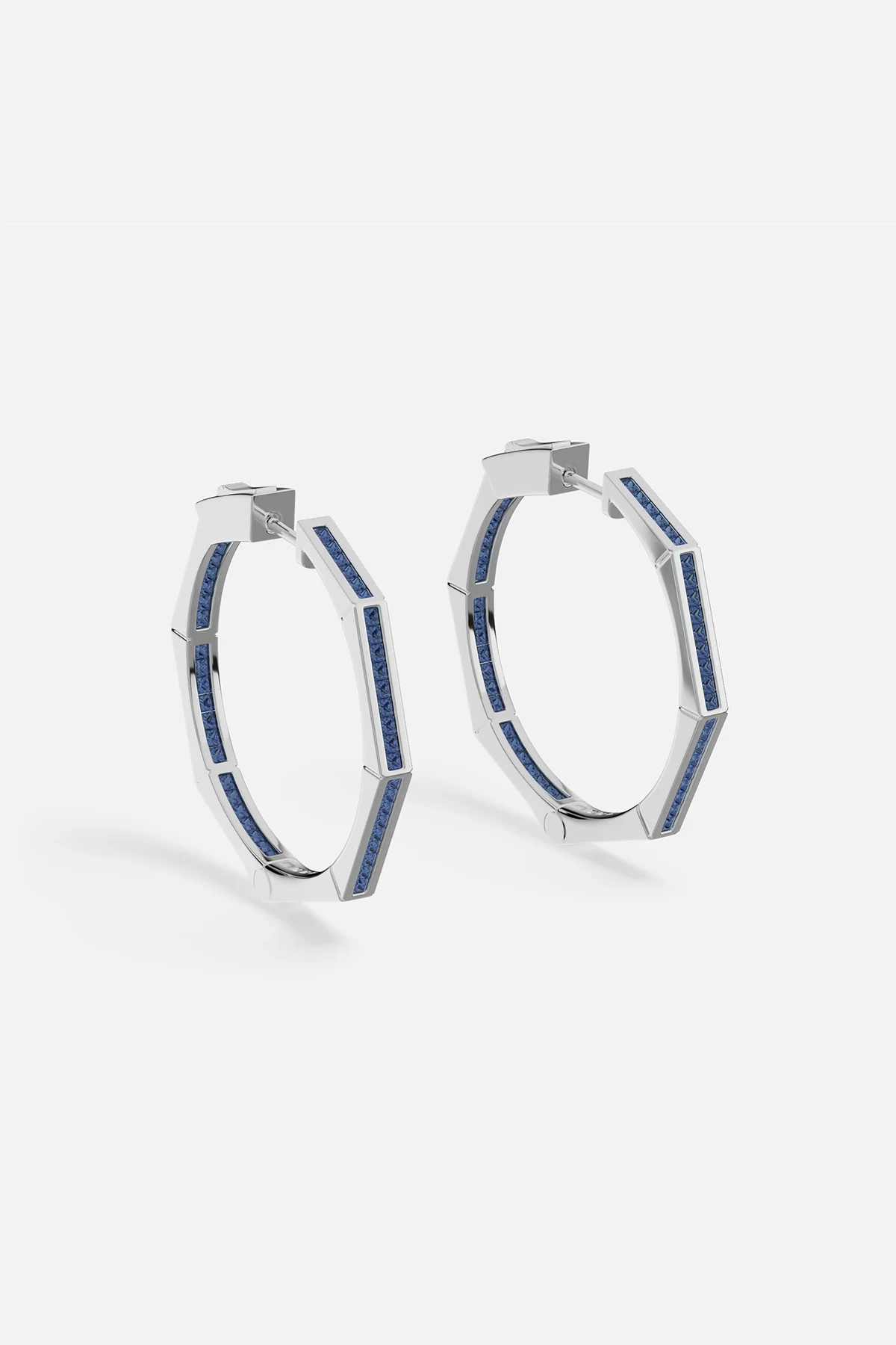 Blue Geometric Pavé Hoop Earrings—