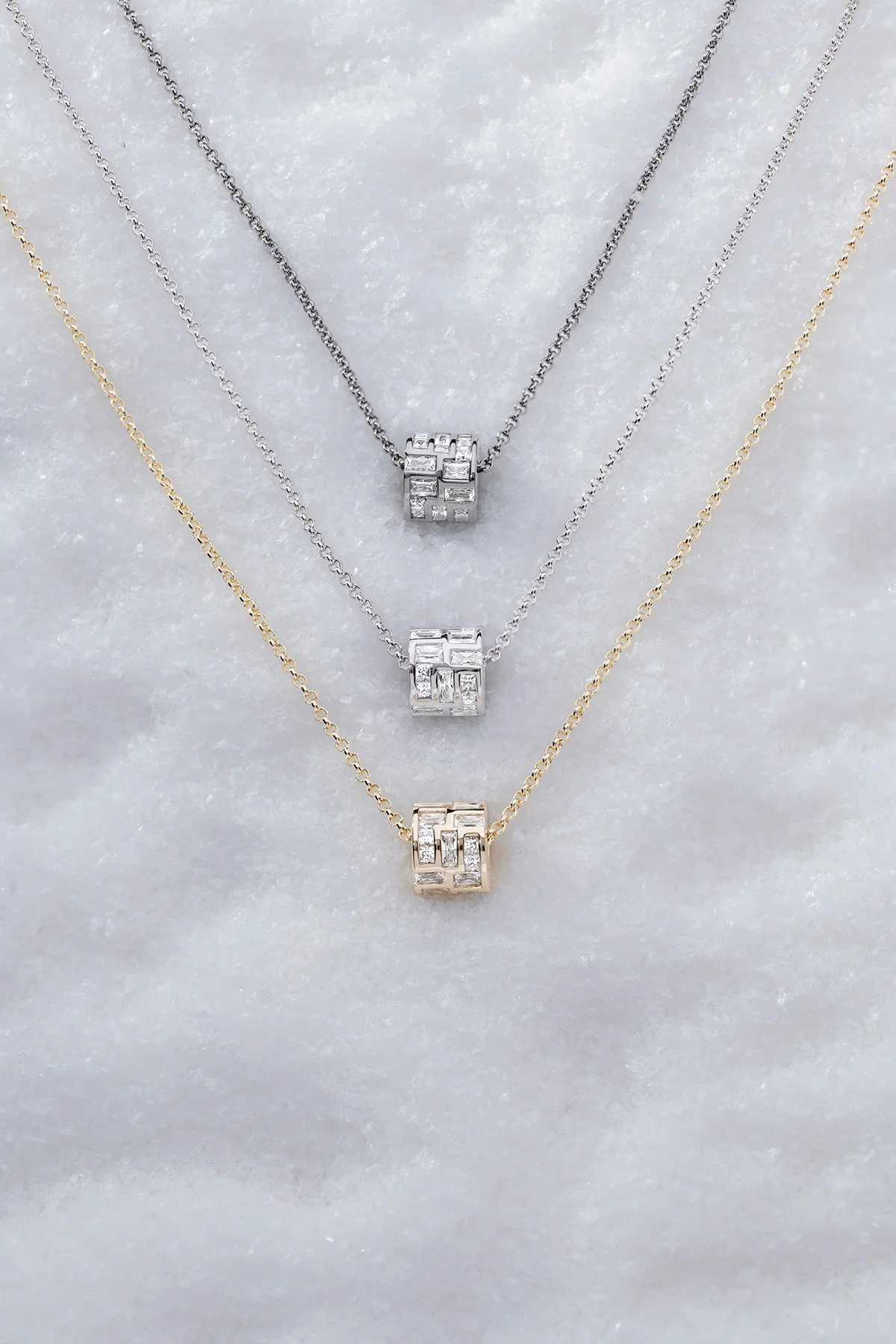 Sterling silver intertwines with paths of brilliant stones to reflect the geometric patterns created by broken ice.